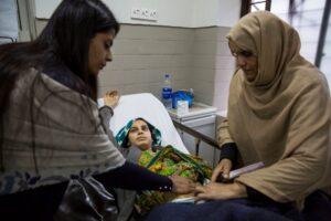 Blood being arranged for transfusion for Nosheela as she suffers from severe postpartum haemorrhaging at Holy Family Hospital on March 12, 2019 in Rawalpindi, Pakistan. Saiyna Bashir © Wellcome Trust